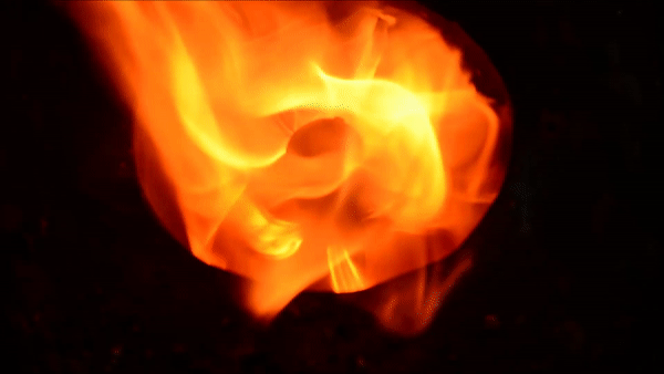 Air injected through holes causing smoke to ignite